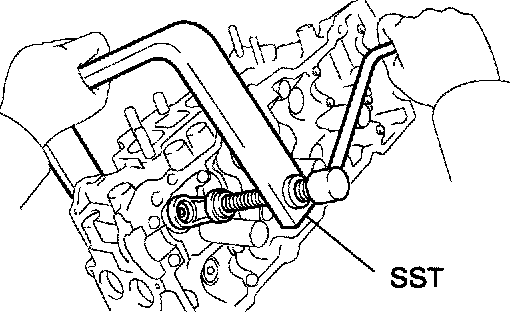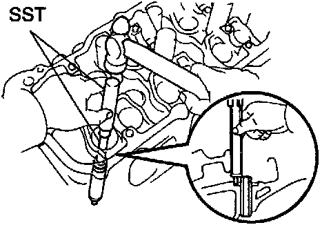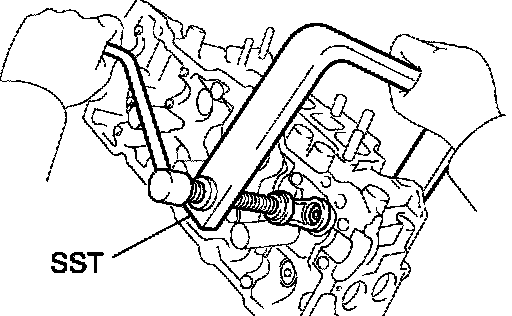 a. Using SST, compress the valve spring and remove the 2 keepers, retainer, spring and valve.