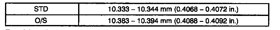 If the bushing bore diameter of the cylinder head is greater than 10.313 mm (0.4060 inch), machine the bushing bore to the dimension of 10.345 - 10.363 mm (0.4073 - 0.4080 inch)
