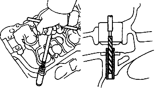 d. Using a sharp 5.5 mm reamer, ream the guide bushing to obtain the standard specified clearance between the guide bushing and valve stem.
