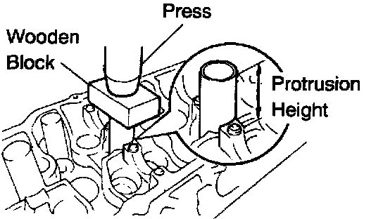 c. Using a wooden block, press in the spark plug tube until its mark.
