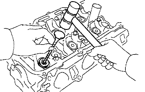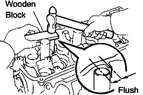 a. Using a wooden block and hammer, tap in a new PCV pipe until its top side is flush with the cylinder head edge.
