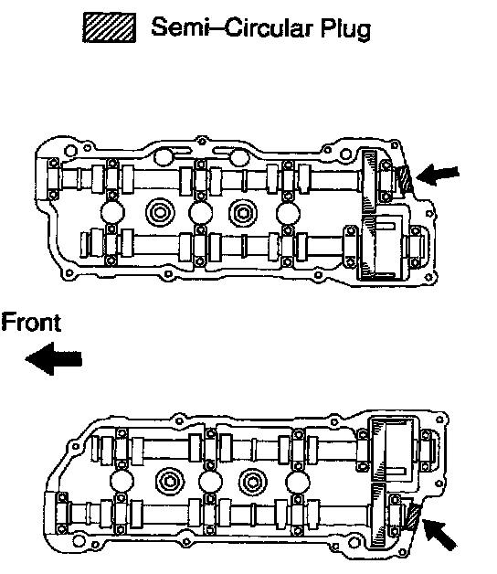 c. Install the 2 semi-circular plugs to the cylinder heads.