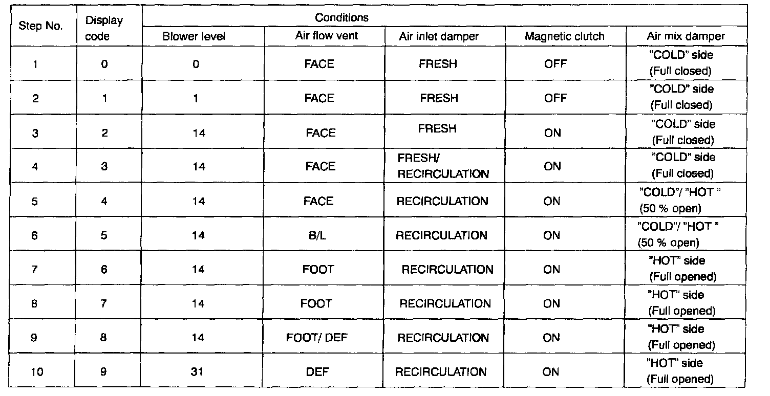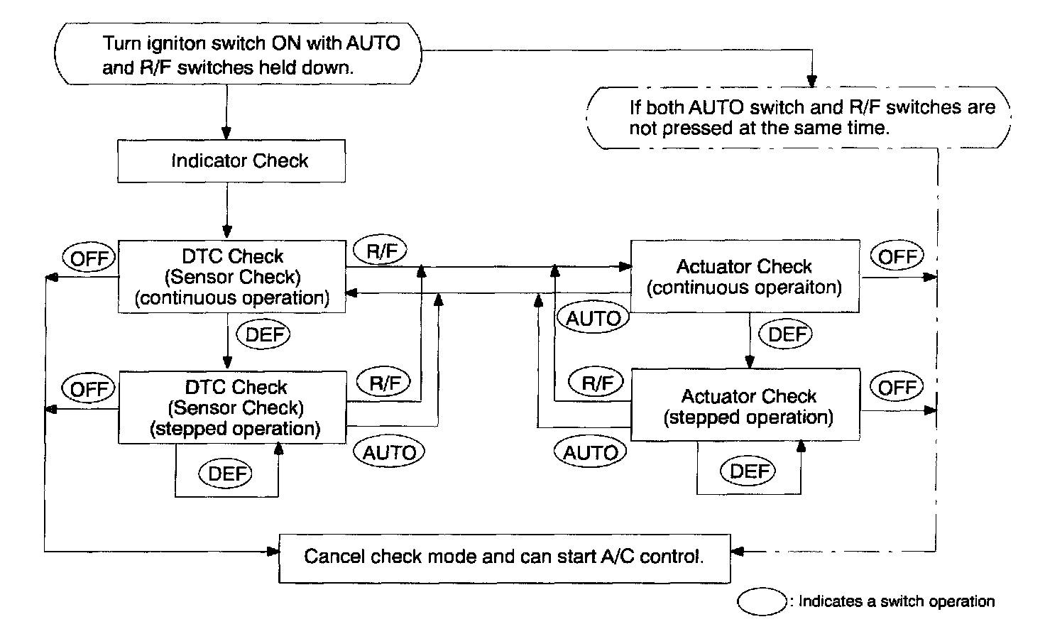 LIST OF OPERATION METHODSBy operating each of the A/C control switches as shown the diagram, it is possible to enter the diagnosis check mode.