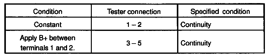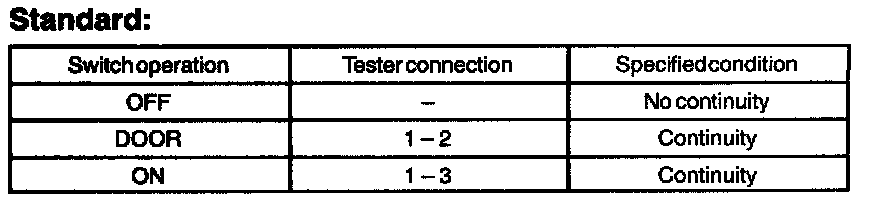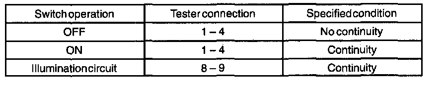 1. Check that there is continuity between terminal 2 and body ground when switch is operated.