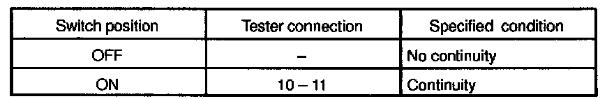 1. Check that there is continuity between terminals at each switch position as shown in the chart.