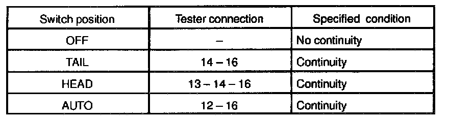 a. Inspect light control switch continuity.