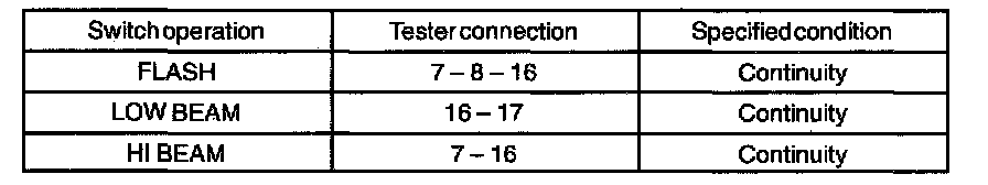 b. Inspect headlight dimmer switch continuity.
