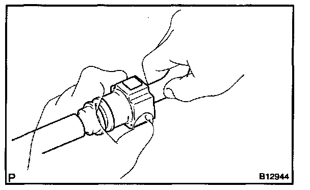4. When the connector and the pipe are stuck, pinch the fuel pipe between the hands, push and pull the connector to free to disconnect and pull it out. Do not use any tool at this time.