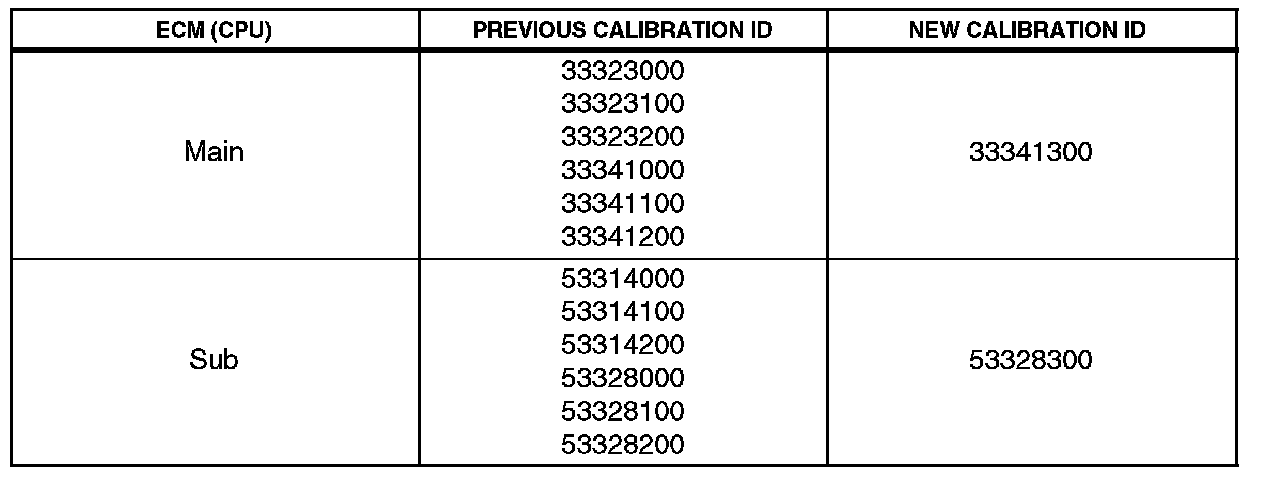 ^ The effect of the new calibration may become more apparent after several days of driving as the ECM (PCM) "learned values" are re-established from the customer's driving.