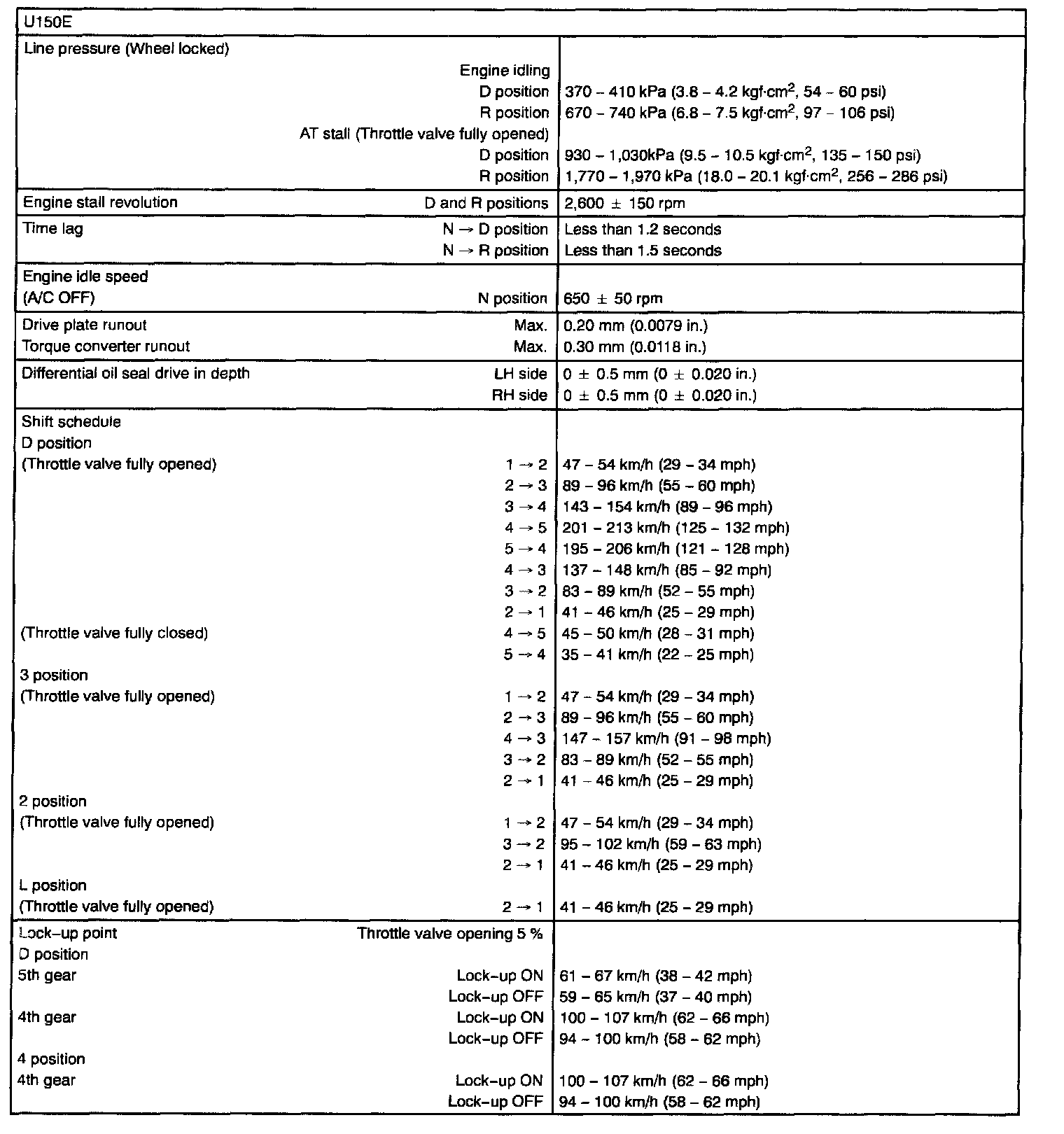 Automatic Transmission Service Data