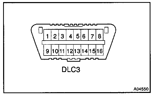 Inspect the DLC3The vehicle's ECM uses ISO 9141-2 for communication. The terminal arrangement of DLC3 complies with SAE J1962 and matches the ISO 9141-2 format.