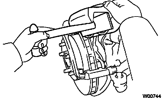 HINT: Do not disconnect the flexible hose from the caliper.
