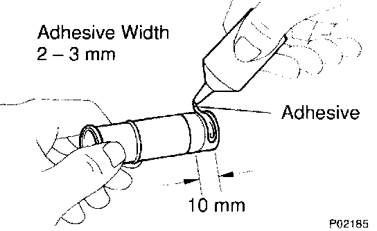 a. Apply adhesive to the end of the heater union as shown in the illustration.