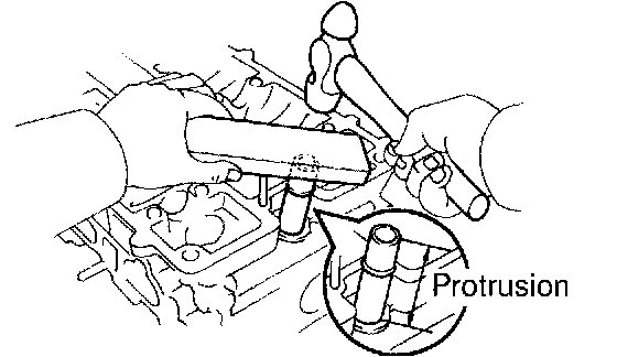b. Using a wooden block and hammer, tap in a new heater union, leaving 48 mm (1.89 inch) protruding from the cylinder head.