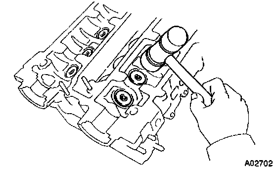 f. Using SST, compress the valve spring and place the 2 keepers around the valve stem.