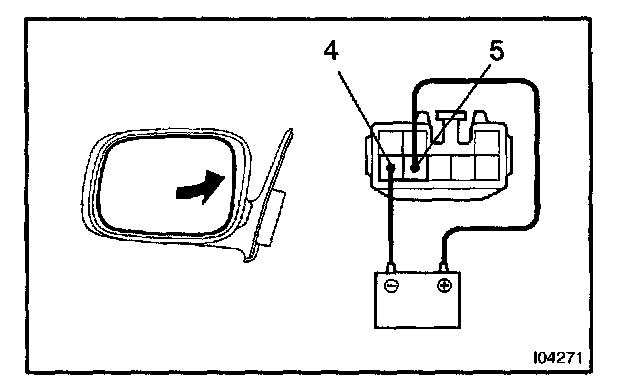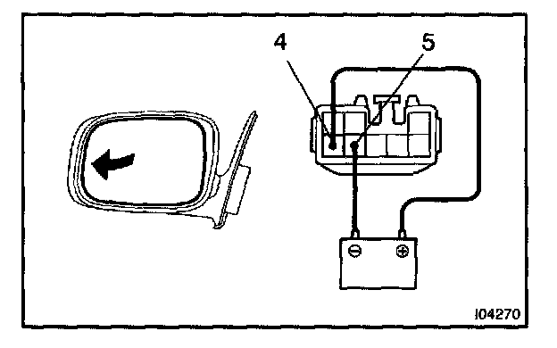 a. Connect the positive (+) lead from the battery to terminal 4 and the negative (-) lead to terminal 5, and check that the mirror turns to the left side.