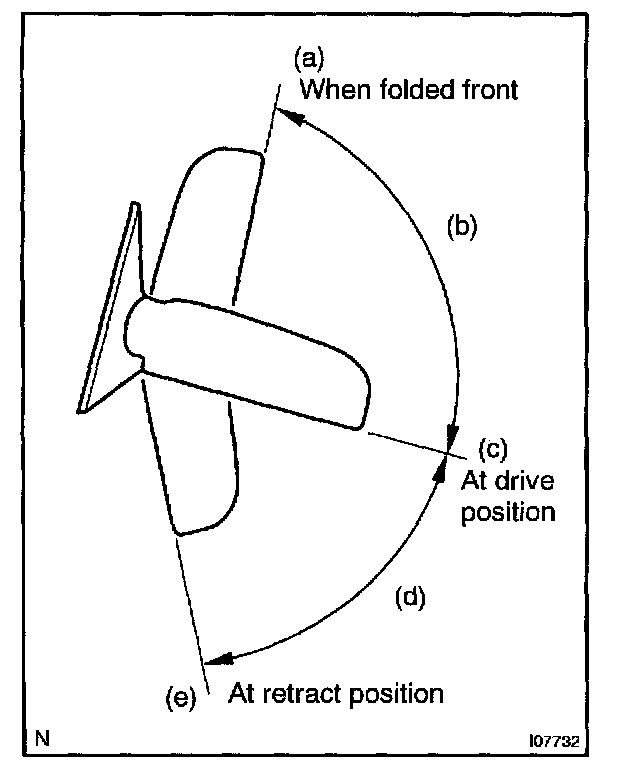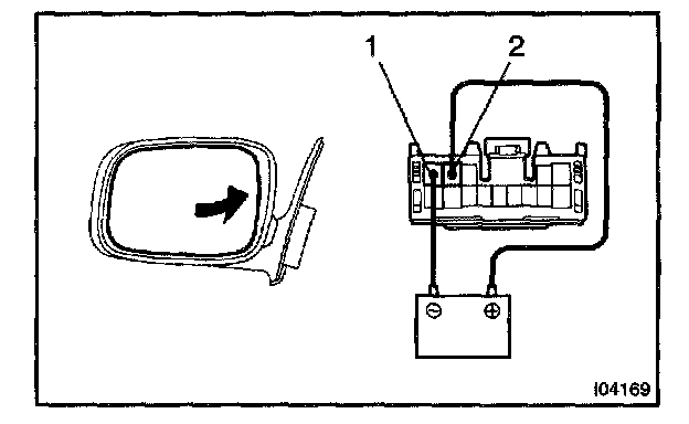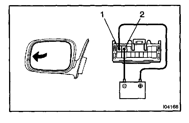 1. Connect the positive (+) lead from the battery to terminal 1 and negative (-) lead to terminal 2, check that the mirror operates at retract position.