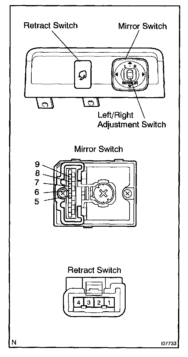 INSPECT MIRROR MOTOR CIRCUIT Left side: