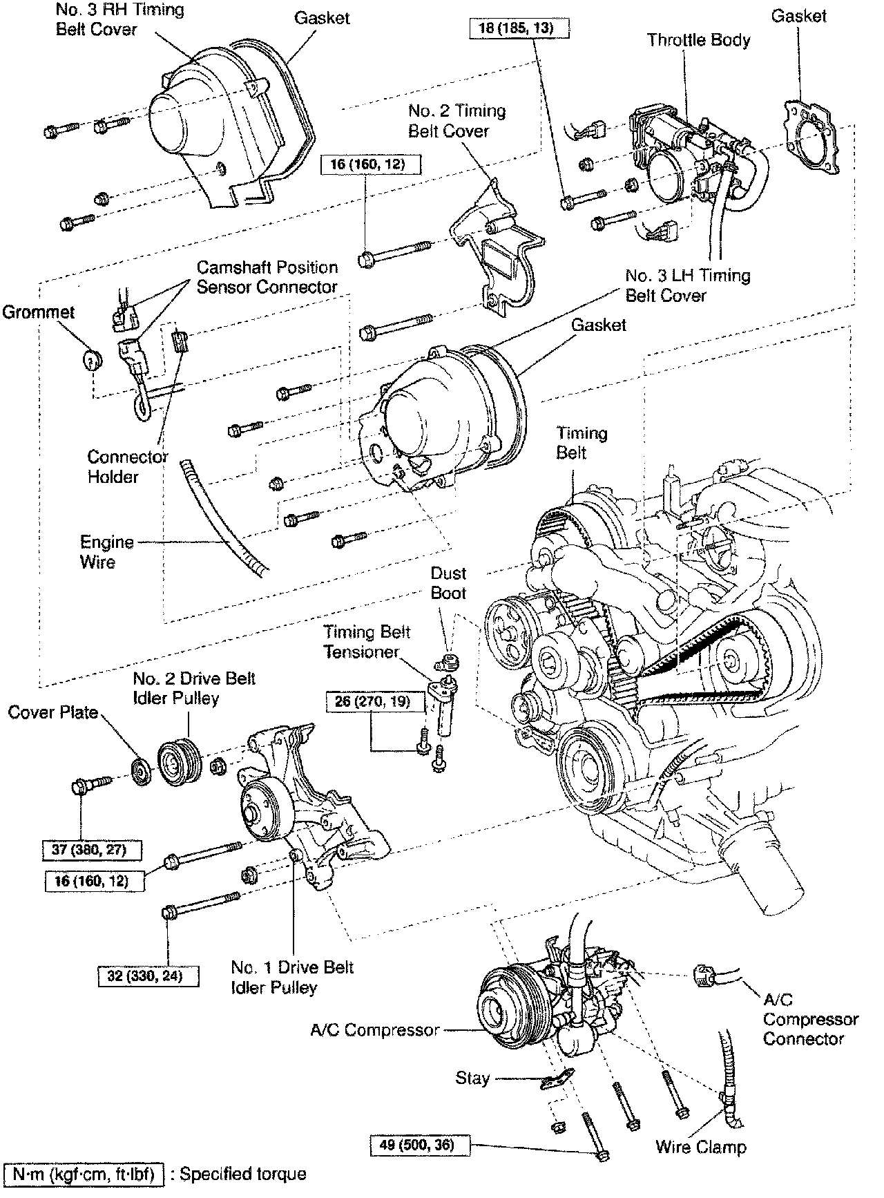 Stud bolt: 18 Nm (185 kgf-cm, 13 ft. lbs.)