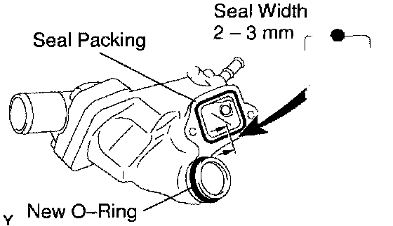 b. Apply seal packing to the sealing groove of water inlet housing as shown in the illustration. Seal packing: Part No. 08826-00100 or equivalent