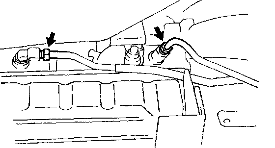 c. Disconnect the 2 oil cooler pipes from the transmission.