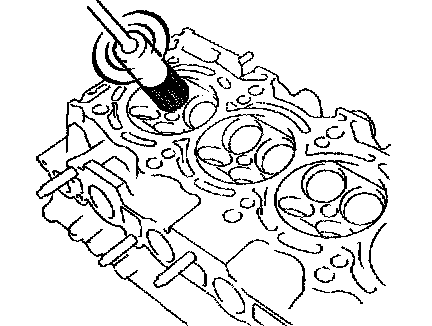 b. Inspect for the cracks. Using a dye penetrant, check the combustion chamber, intake ports, exhaust ports and cylinder block surface for cracks.