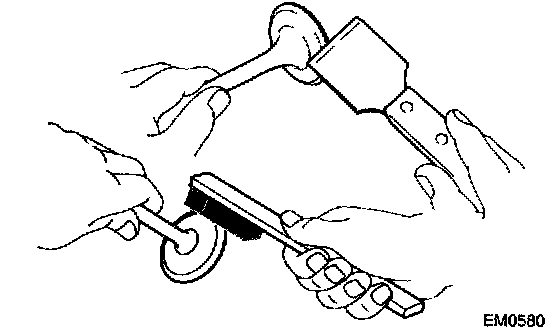 a. Using a gasket scraper, chip off any carbon from the valve head.