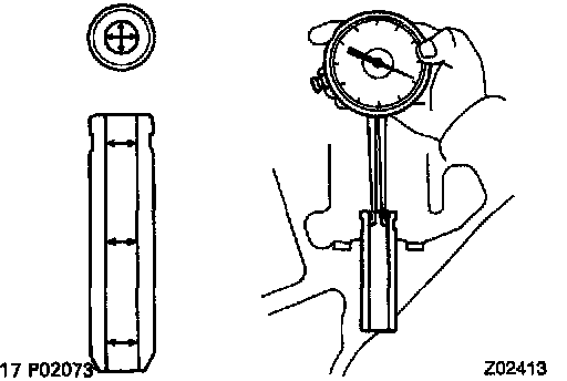 a. Using a caliper gauge, measure the lifter bore diameter of the cylinder head.