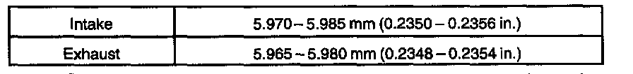 If the clearance is greater than maximum, replace the valve and guide bushing.