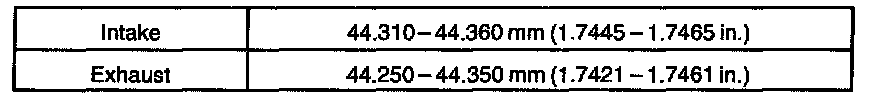 - Check that the seat contact is in the middle of the valve face with the following width: