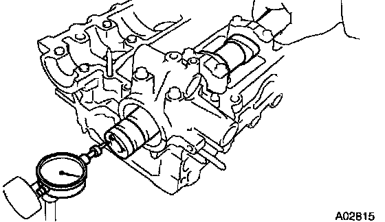 b. Using a dial indicator, measure the thrust clearance while moving the camshaft back and forth.