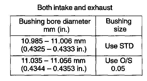 If the bushing bore diameter of the cylinder head is greater than 11.056 mm (0.4353 inch), replace the cylinder head.
