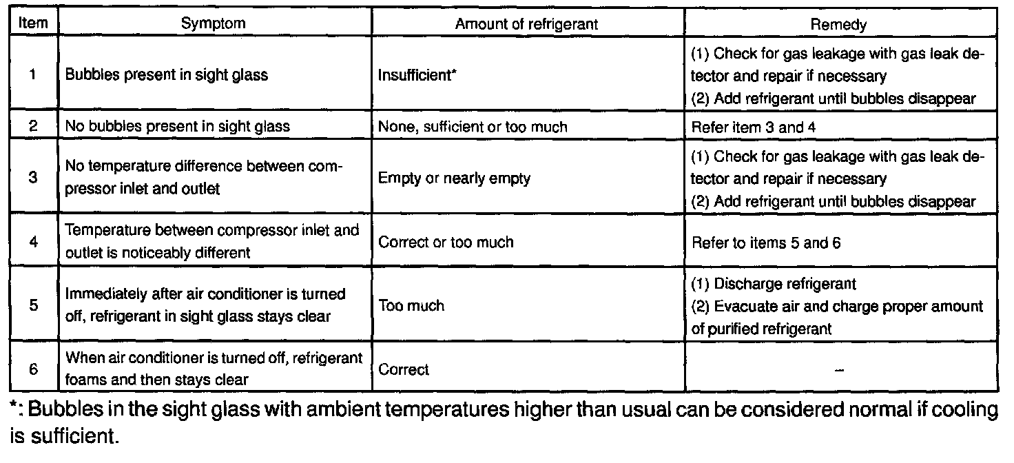 Observe the sight glass on the liquid tube. Test conditions: