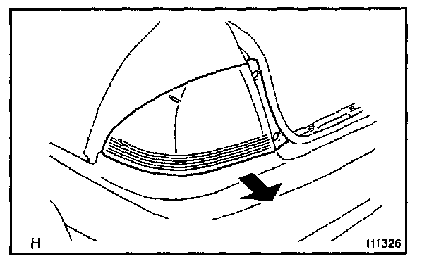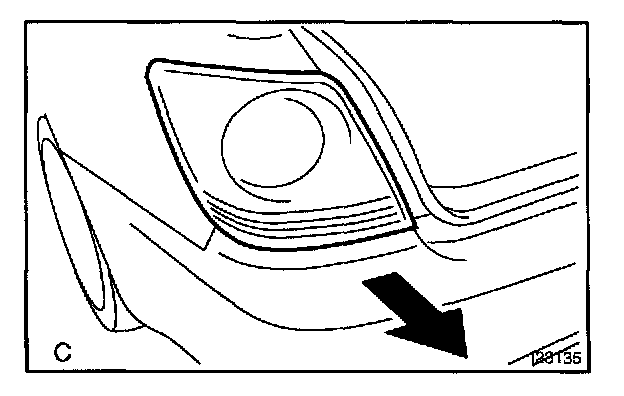 d. Lift up the front bumper and pull the headlight assembly towards the front of the vehicle, and disconnect the engagement of the headlight assembly.