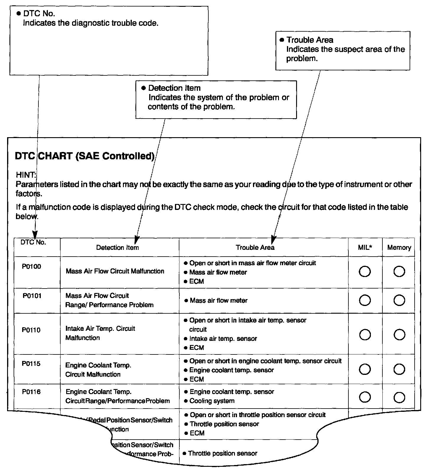 DIAGNOSTIC TROUBLE CODE CHART