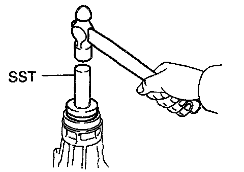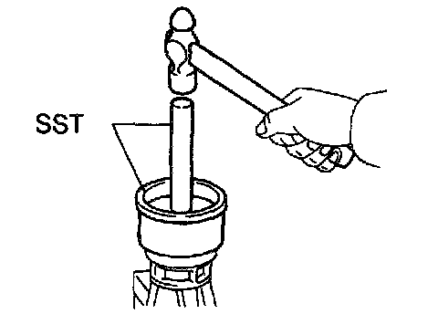 a. Using SST and a hammer, carefully drive a new oil seal in as far as it will go. SST 09325-20010