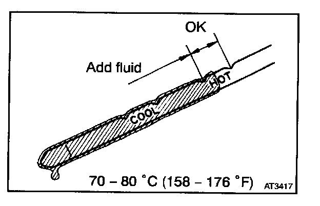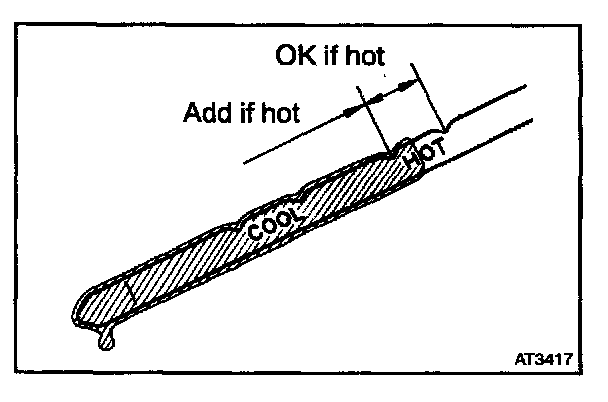 - Only use the COOL range on the dipstick as a rough reference when the fluid is replaced or the engine does not run.