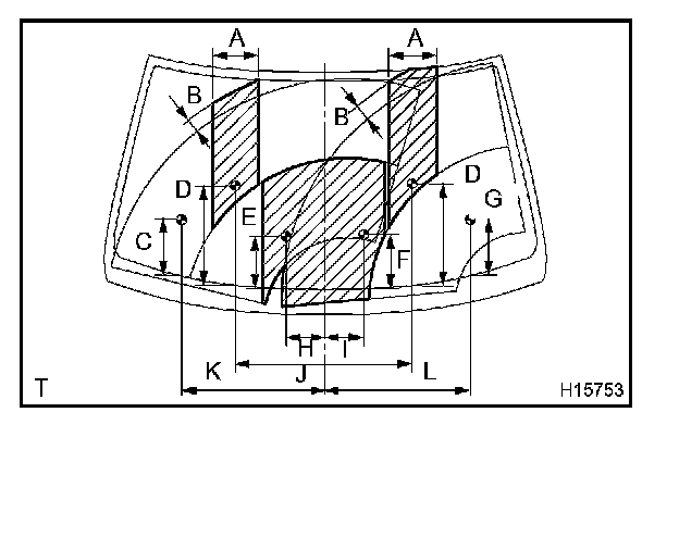b. Check if the outer point where the washer fluid hits the windshield is within the range of the wiping pattern (the area of the glass which is wiped by the wiper blades).