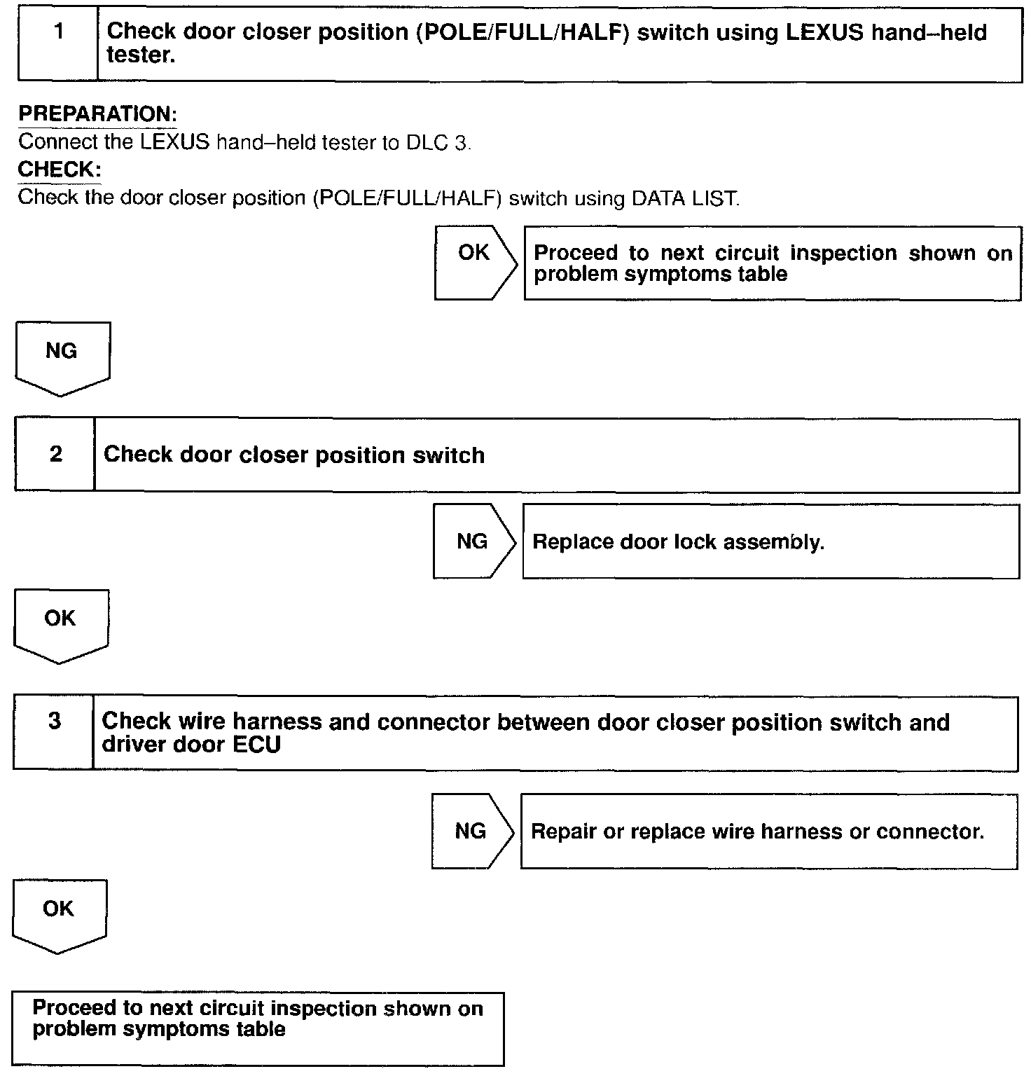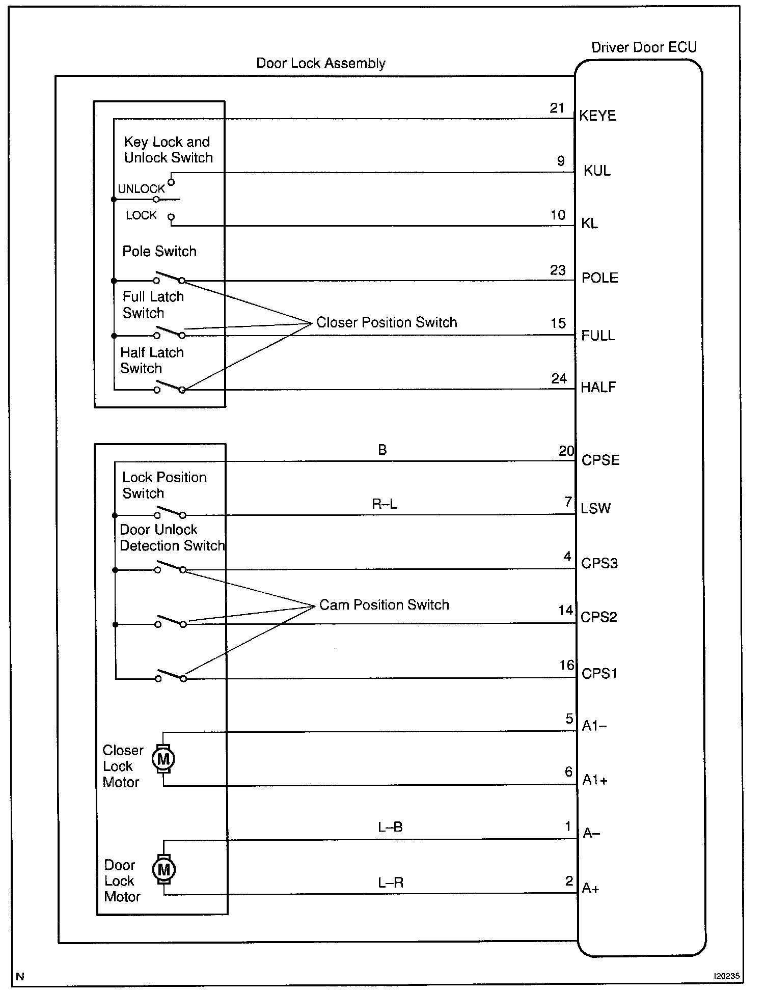 CIRCUIT DESCRIPTIONThe closer position switch is built in the door lock assembly and detects the position of the closer.