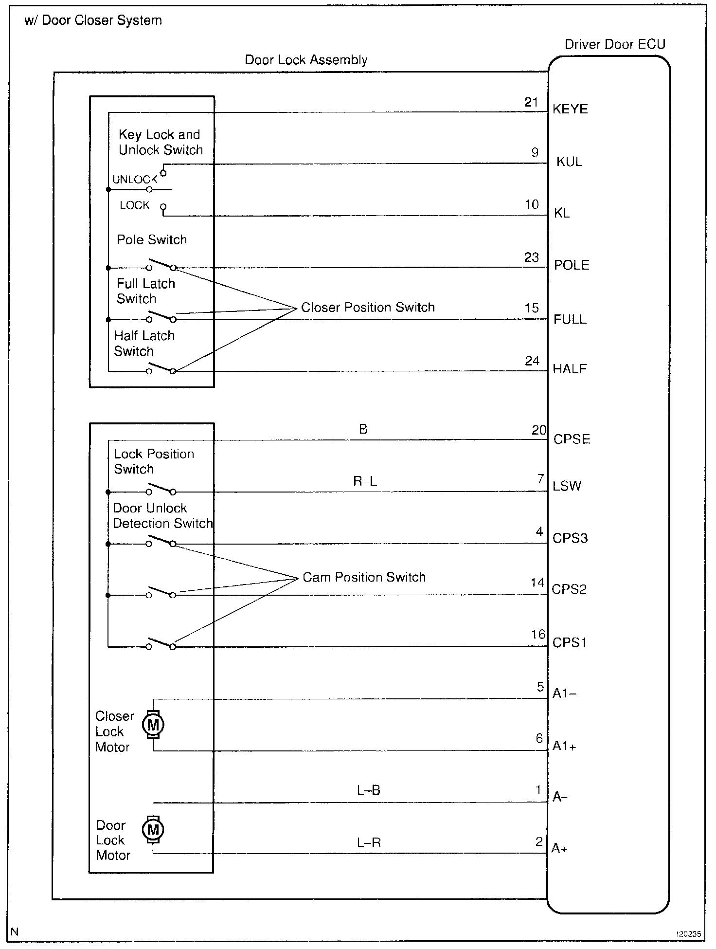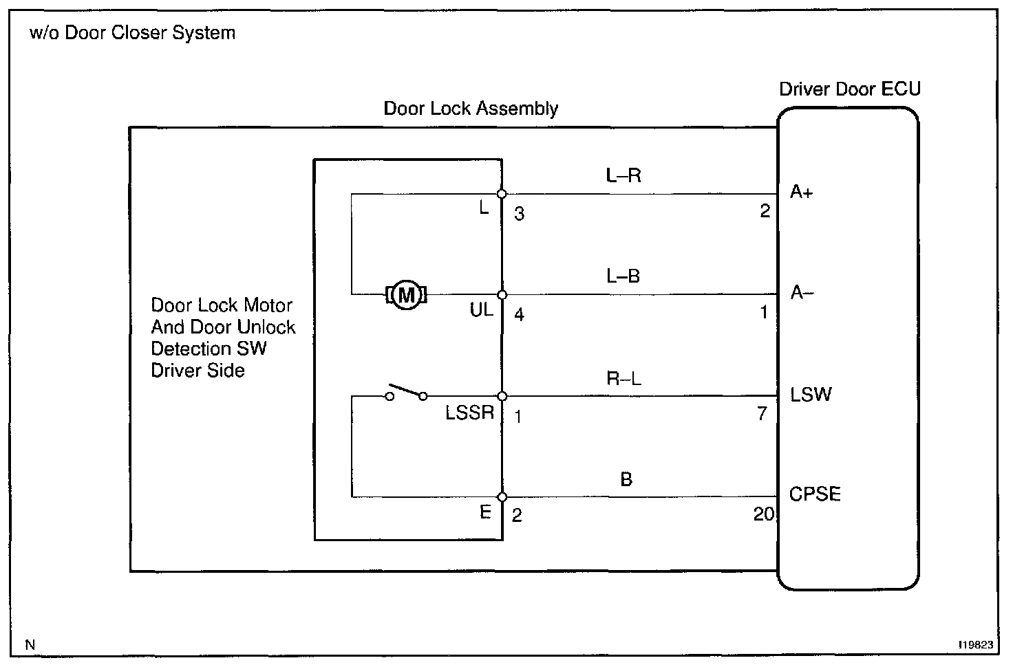 The Driver Door ECU receives the driver door lock switch signal from the master switch to operate the door lock motor.