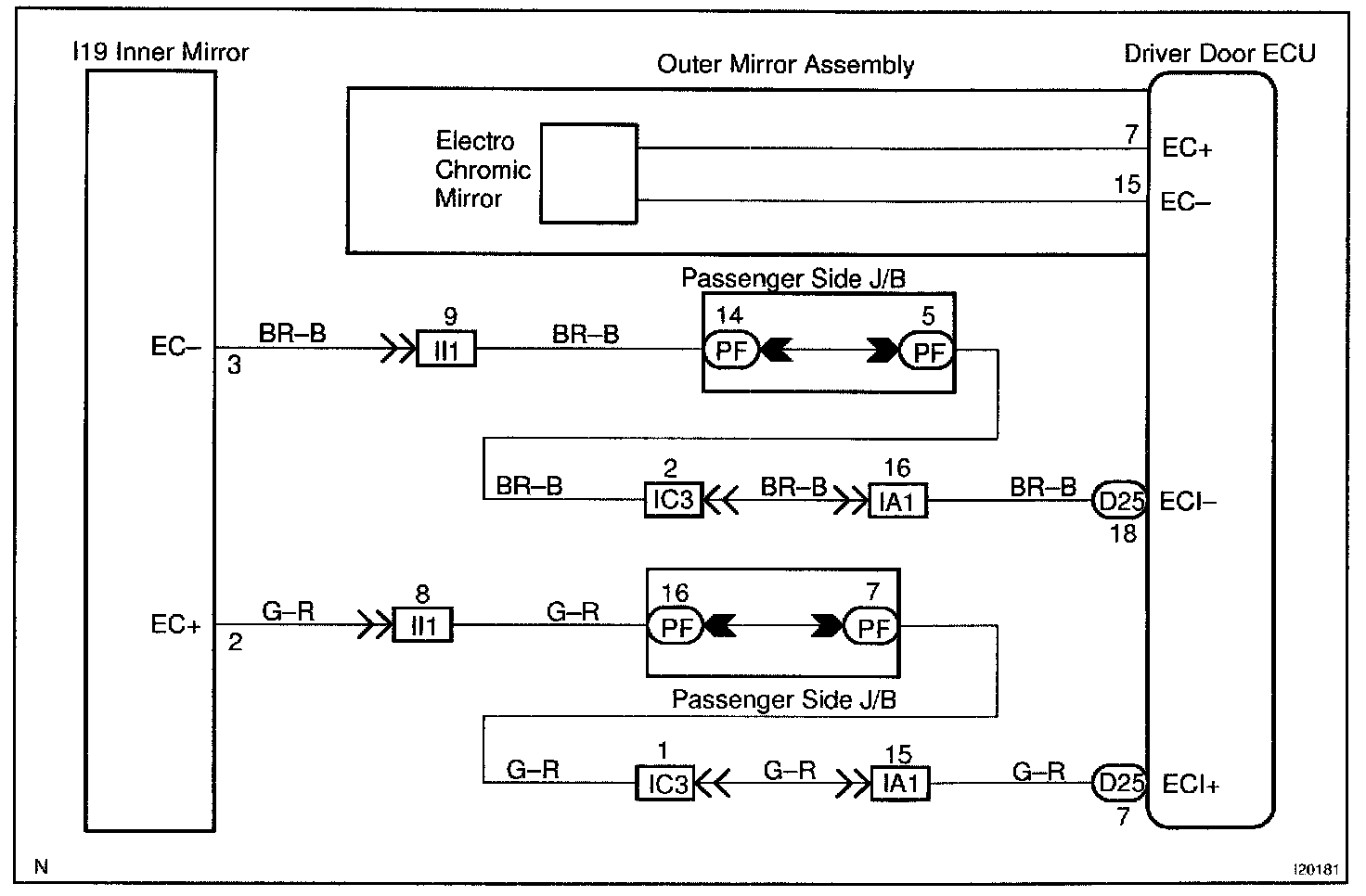 The outer electro chromic signal is sent to the room mirror via the Driver Door ECU.