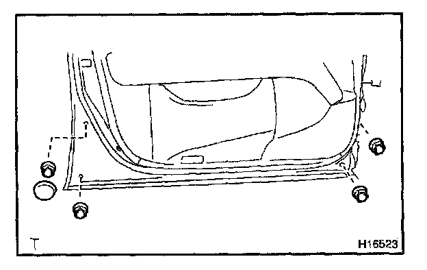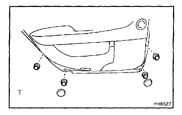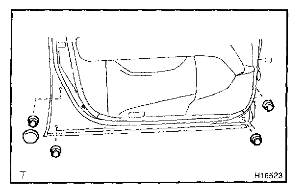 g. Install the rear door outside moulding with the 4 nuts. h. Install the 2 hole covers.