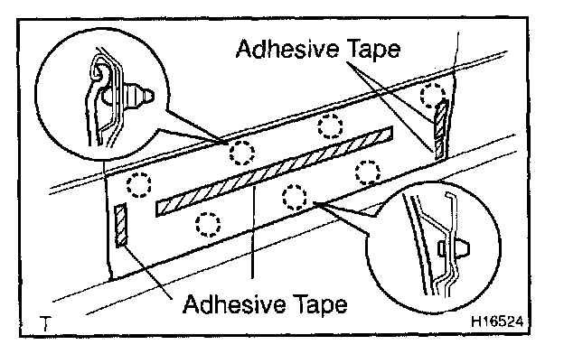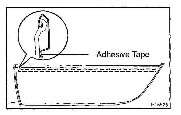 4. Apply new adhesive tapes to the moulding as shown in the illustration.