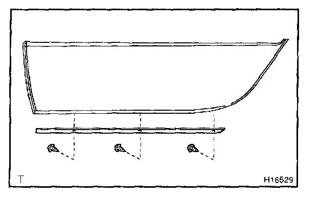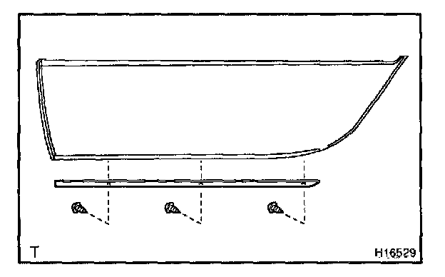 Install the rear door outside lower moulding with the 3 screws to the rear door outside moulding.