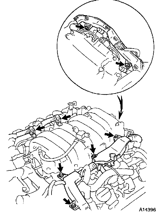 8. REMOVE UPPER AND LOWER INTAKE MANIFOLDS ASSEMBLY