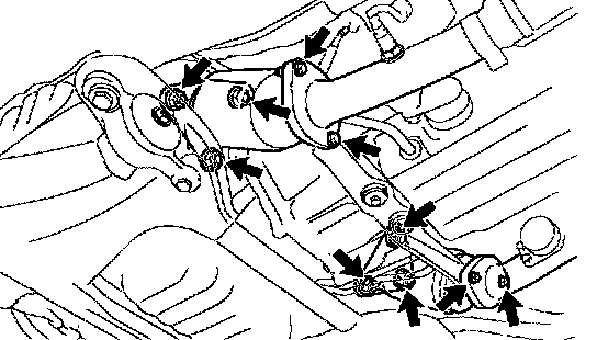 a. Remove the 4 bolts and 4 nuts holding the front exhaust pipe to the TWC.