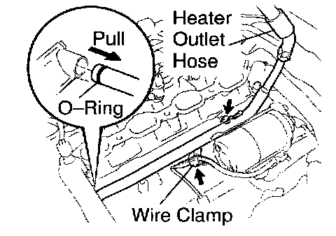 a. Disconnect the heater outlet hose from the water bypass pipe.