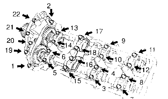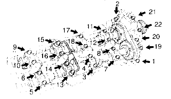 4. Uniformly loosen the 22 bearing cap bolts in several passes, in the sequence shown.