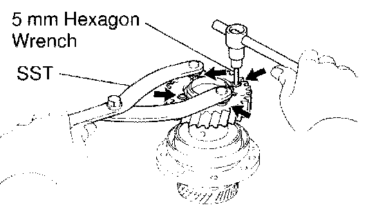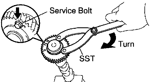 b. Using SST, turn the sub-gear clockwise, and remove the service bolt.
