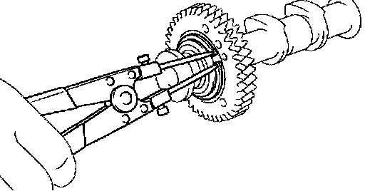 HINT: When removing the camshaft, make sure that the torsional spring force of the sub-gear has been eliminated by the above operation.